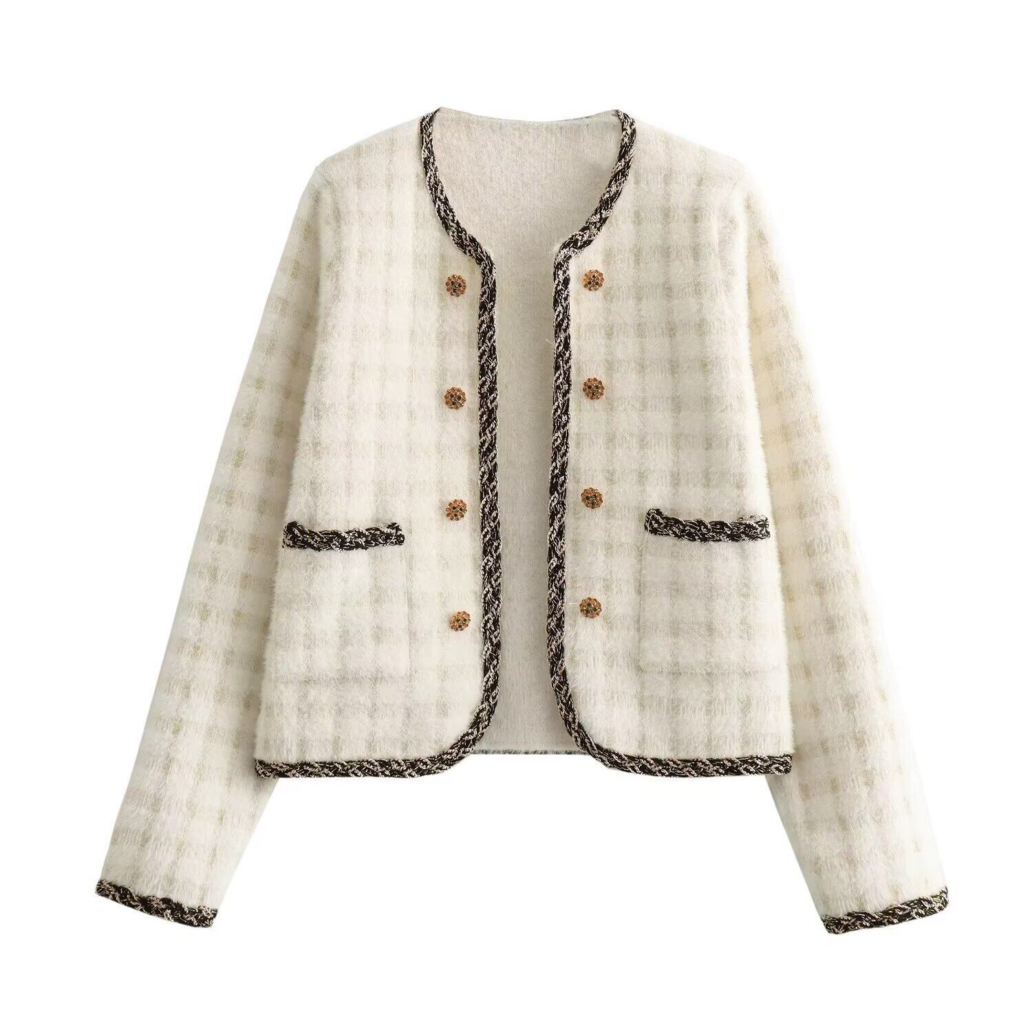 レディース トップス ジャケット カーディガン 上着 羽織 前開き 長袖 クルーネック 襟なし ノーカラー ポケット コンサバ ボタン バイカラー ダブルブレスト ニット きれいめ 上品 おしゃれ かっこいい こなれ感 個性的 エレガント 主役級 存在感 かっちり 都会的 清潔感 シック チェック 春 秋 冬 ロングシーズン 授業参観 会議 ミーティング ママ OL デート レストラン 合コン コンパ 婚活 ランチ お呼ばれ 重ね着 暖かい 着回し レイヤード 清楚 ワンサイズ 白 ホワイト 黒 ブラック