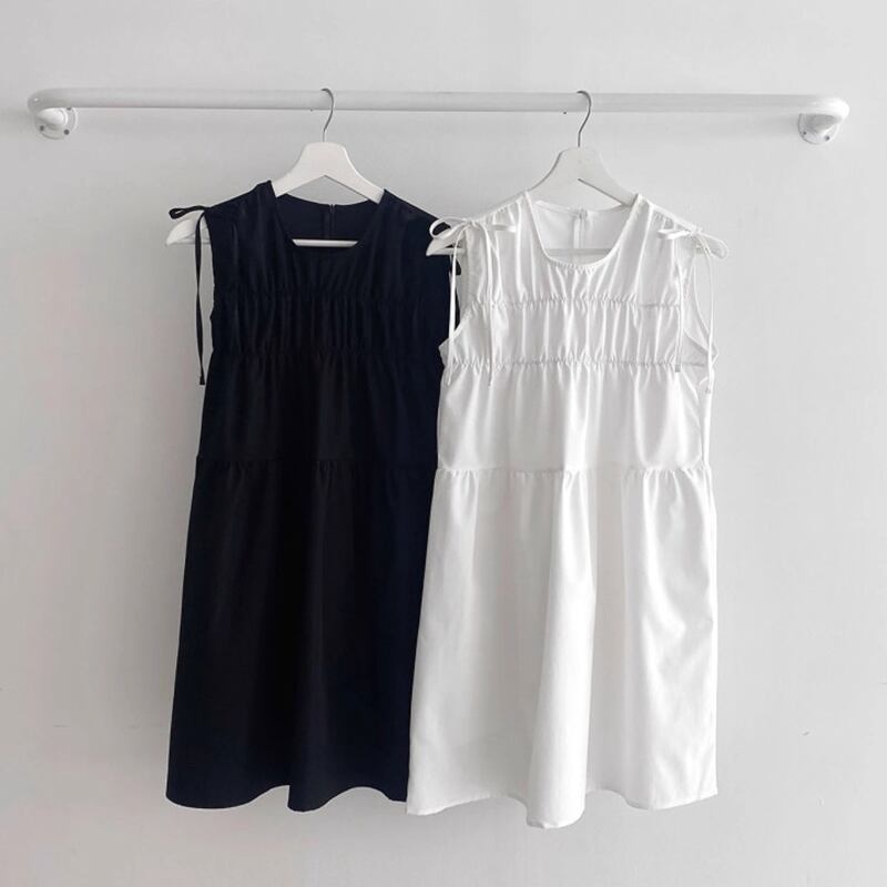 セミフレアのAラインシルエットが、軽やかな印象を醸し出し、フェミニンなスタイルを演出します。肩にはリボンディテールが施され、大人可愛い雰囲気をプラスしています。都会的で清潔感あふれるデザインは、デートやお出かけ、パーティーなど様々なシーンで活躍します。シンプルながらも存在感のある一着で、主役級の魅力を発揮します。