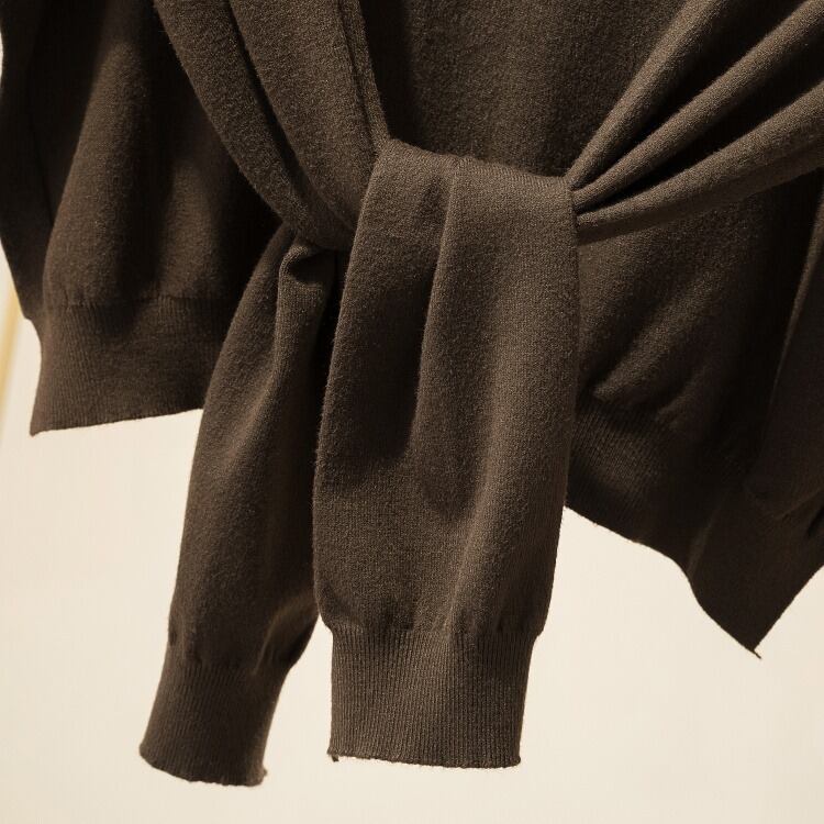 いつものコーディネートを一瞬で洗練されたトレンドスタイルに格上げする、ショール風ニットボレロ。まるでショールやカーディガンを肩に掛け、無造作に結んだかのようなデザイン性の高さが最大の魅力です。キャミソールやタンクトップの上に合わせて一枚で着るのはもちろん、Tシャツや薄手のタートルネックの上からベストのようにレイヤードするのもおすすめです。デニムでカジュアルダウンしたり、きれいめスカートと合わせてエレガントな着こなしにしたりと、高い着回し力を発揮します。シンプルながらも主役級の存在感を放つ、大人の女性に必須のレイヤードアイテムです。