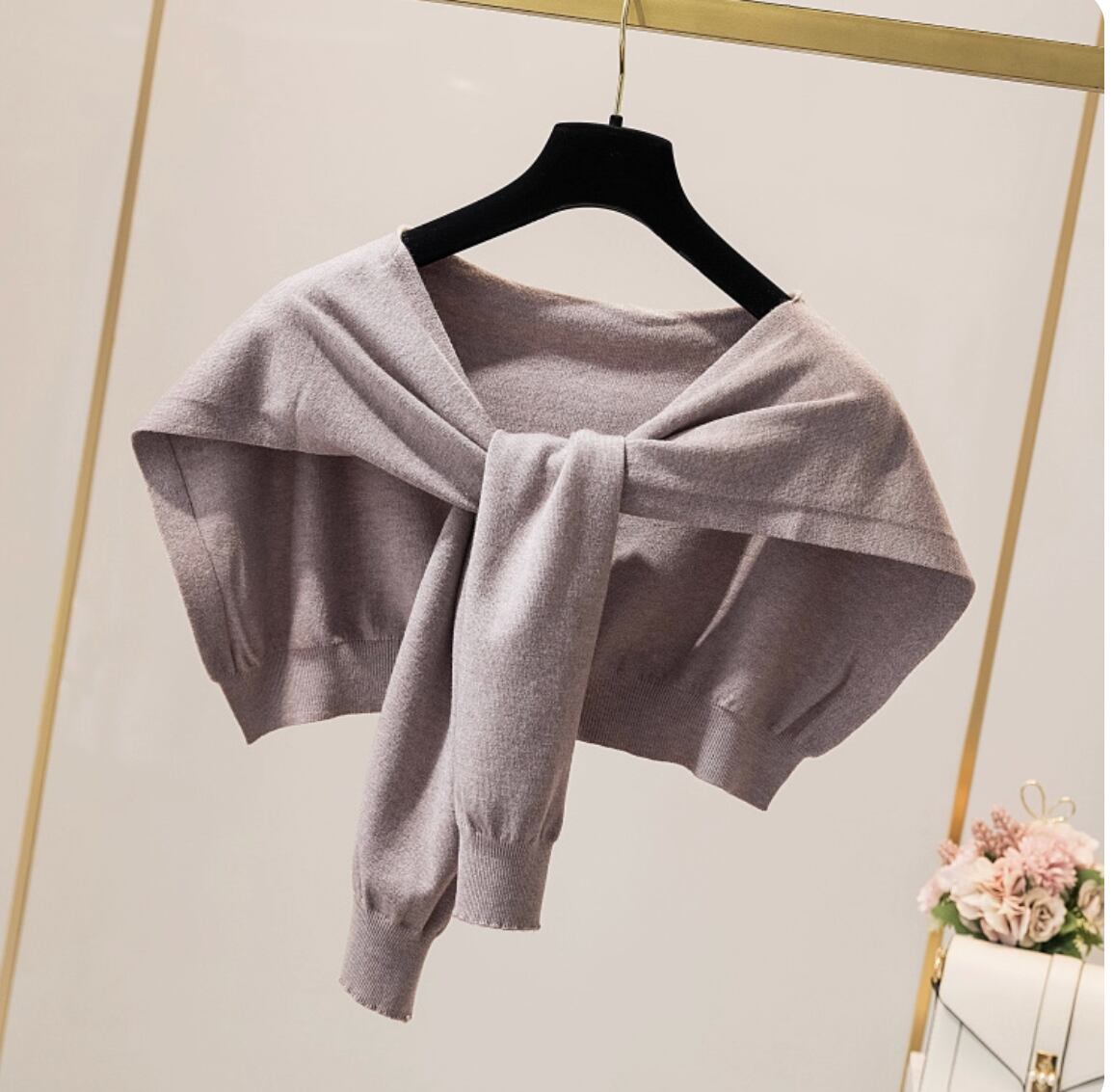 ニットショール 肩掛けカーディガン風 上着 羽織 ショート クロップド丈 重ね着風 シンプル カジュアル おしゃれ こなれ感 個性的 主役級 存在感 ナチュラル 爽やか 無地 春 夏 秋 冬 オールシーズン シーズンレス クリスマス バレンタイン ママ 学生 デート お出かけ 旅行 女子会 ショッピング ランチ 重ね着 楽ちん 普段使い 着回し レイヤード インスタ映え ワンサイズ 黒 ブラック 茶色 ブラウン グレー ベージュ カーキ ピンク ブルー くすみ 緑 グリーン 大人カラー 春カラー モカ