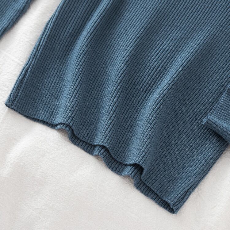 いつもの着こなしに大人の遊び心と洗練さをプラスする、カットアウトデザインのリブニットプルオーバー。最大の魅力は、首元に施された絶妙な肌見せデザイン。優雅なカーブを描いて切り込まれたカットアウトが、デコルテラインを上品かつ大胆に演出します。一枚で着てもインナーとしてももたつかず、ジャケットやカーディガンを羽織ってもスマートに決まるのが嬉しいポイントです。