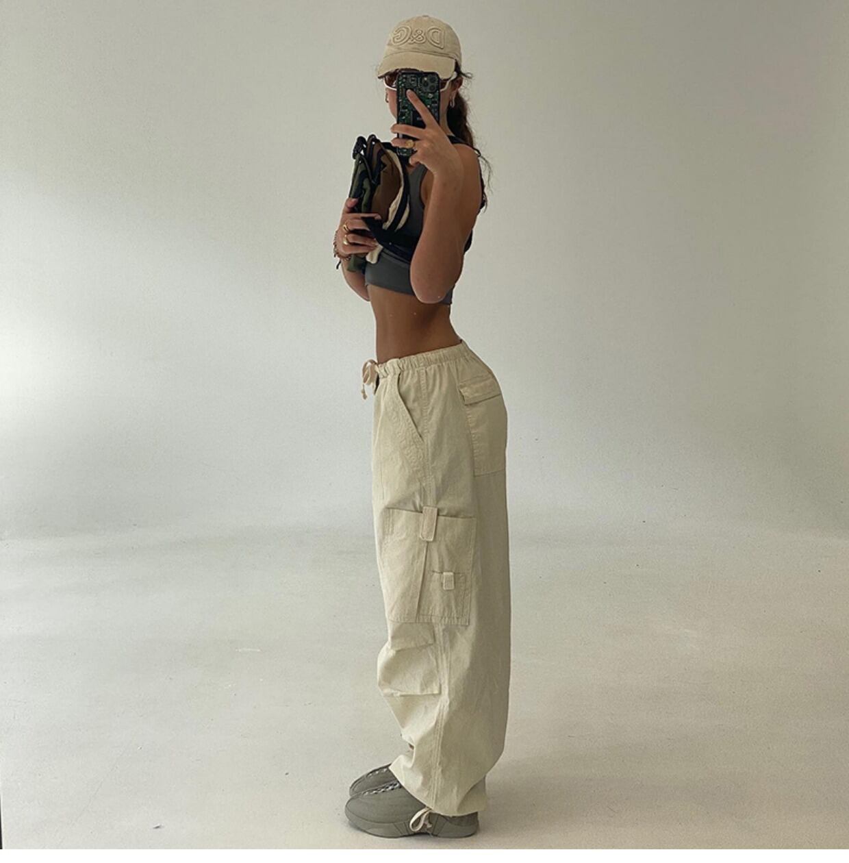 ミリタリーテイストを取り入れたワークパンツは、スポーティーな雰囲気とラフなこなれ感が魅力。ウエストゴムとドロストで調整も簡単、アクティブな日にもぴったり。オフホワイトのカラーが春夏は爽やかに、秋冬は柔らかく映える万能アイテム。トレンド感と着回し力を兼ね備えた、頼れる一本です。