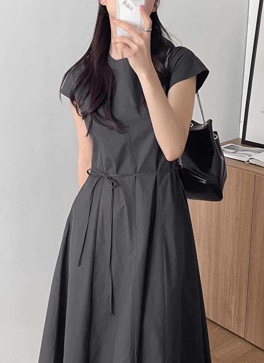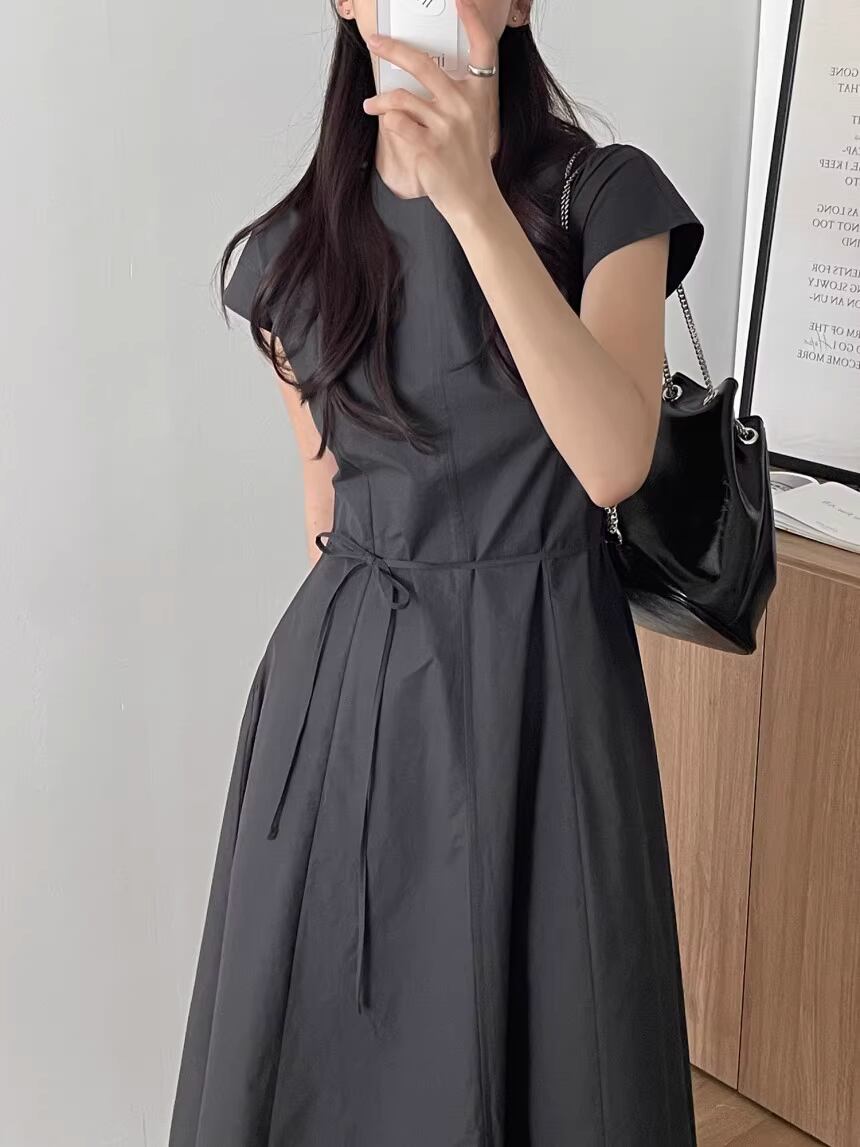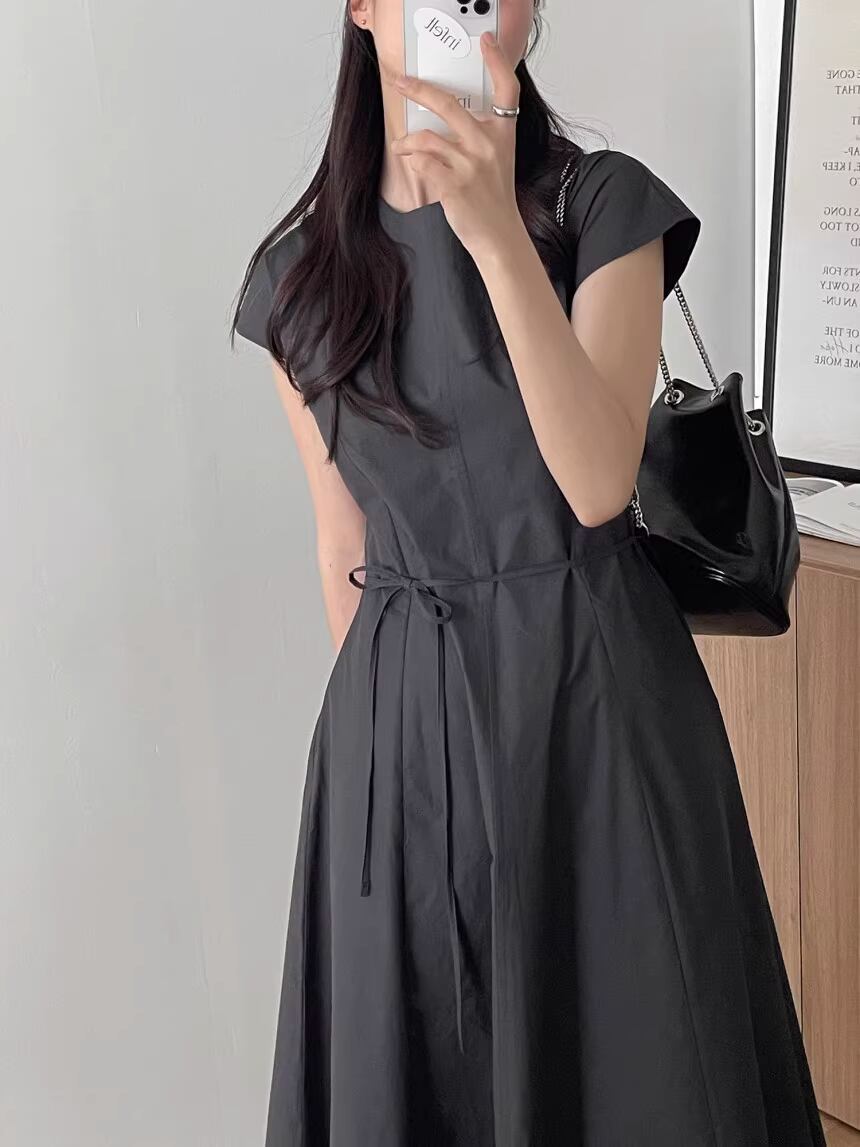 フレアデザインとミモレ丈が魅力のこのワンピースは、フレンチスリーブとラウンドネックが女性らしい印象を与えつつ、リボンのアクセントでおしゃれを引き立てます。軽やかで通気性も良く、春夏のシーズンにぴったり。シンプルでありながら上品さを兼ね備えた一着は、さまざまなシーンで活躍すること間違いなし!