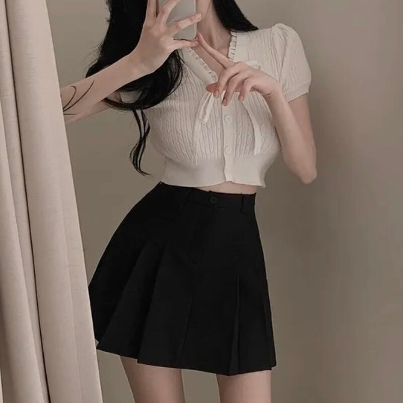 大人可愛いスタイルを実現する、クロップドニット♡♡