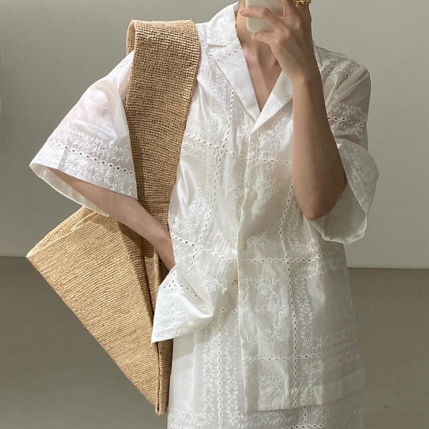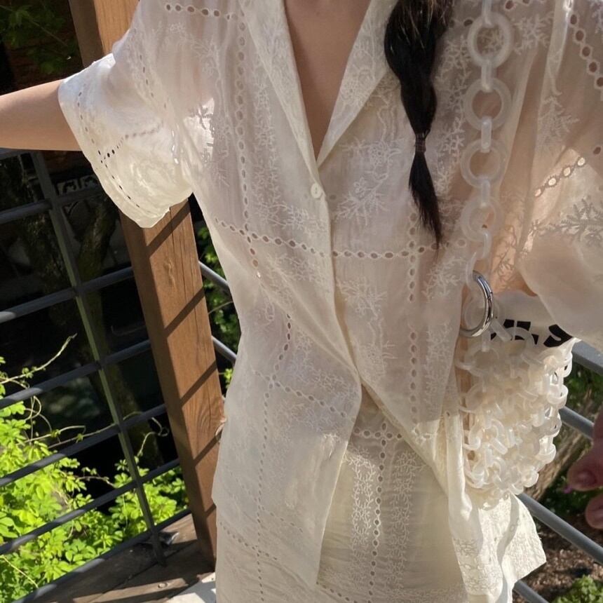 レディース トップス シャツ 刺繍 かぎ針編み レトロ 半袖 透け感 シースルー かわいい 大人可愛い きれいめ シンプル カジュアル 上品 おしゃれ こなれ感 ラフ ルーズ 個性的 クール キュート ナチュラル 清潔感 涼しげ 軽やか デート お出かけ 旅行 レストラン 女子会 休日 ショッピング コンサート ライブ 合コン コンパ カフェ フェス モノトーン ランチ お呼ばれ 韓国 オルチャン コーデ 楽ちん 体型カバー 普段使い 着回し インスタ映え ゆったり フリーサイズ ワンサイズ ホワイト