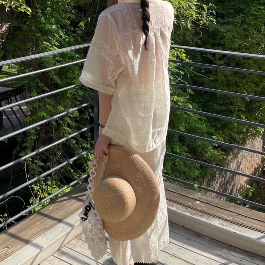 透け感のあるシースルー生地は涼しげで、これからの季節にぴったり。かぎ針編みのディテールがレトロな雰囲気を演出し、シンプルなコーディネートにこなれ感を与えてくれます!カジュアルなお出かけやデートに、さらっと着こなせる一着です。