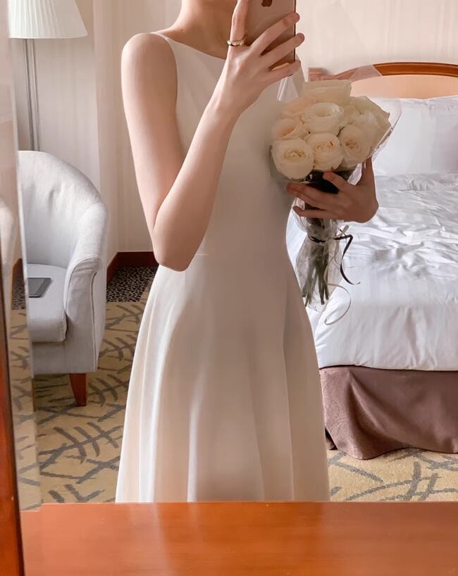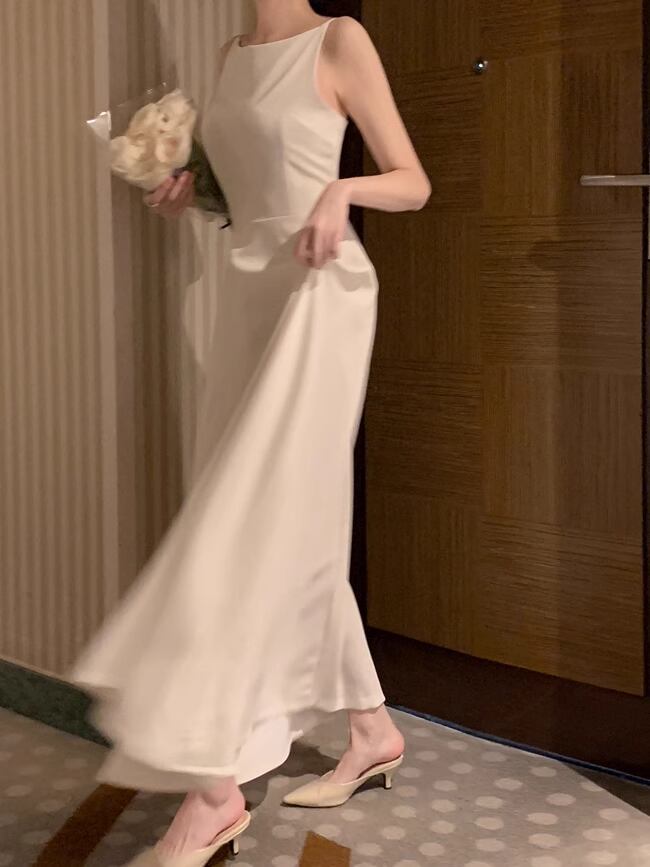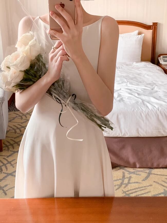 袖なしデザインは、涼しげで軽やか。セミフレアなシルエットが、フェミニンで上品な印象を与えます。シンプルながらも、おしゃれでレトロな雰囲気が漂い、都会的かつラグジュアリーなスタイルを楽しめます。どんなシーンでも活躍する、オールシーズン使えるアイテムです。