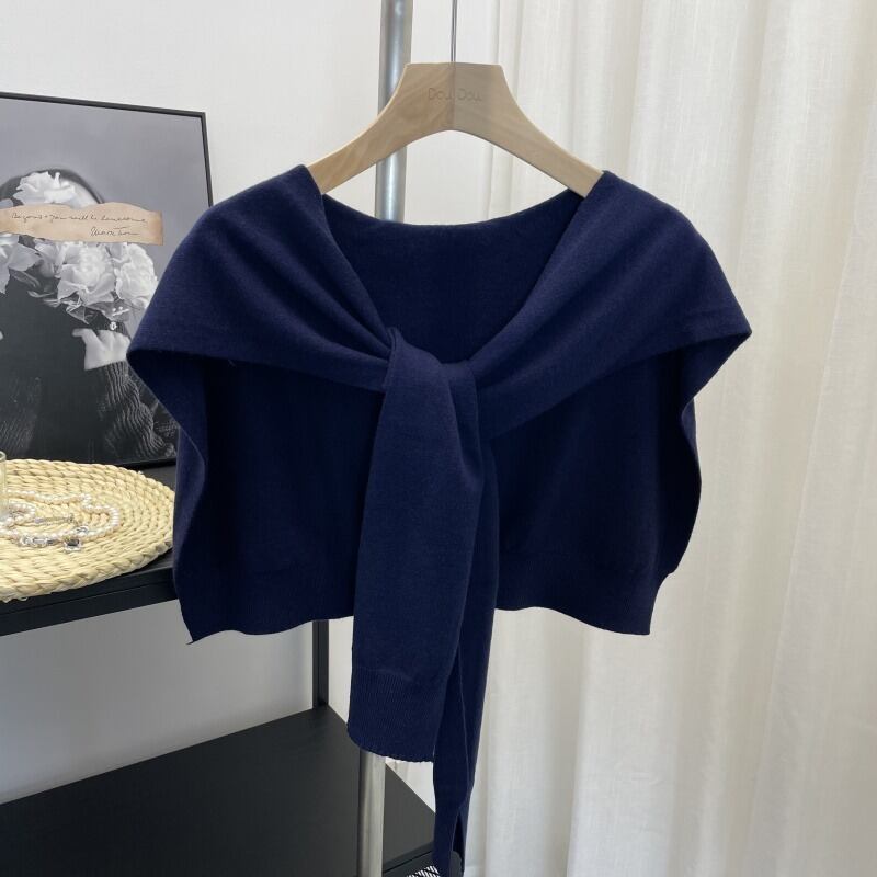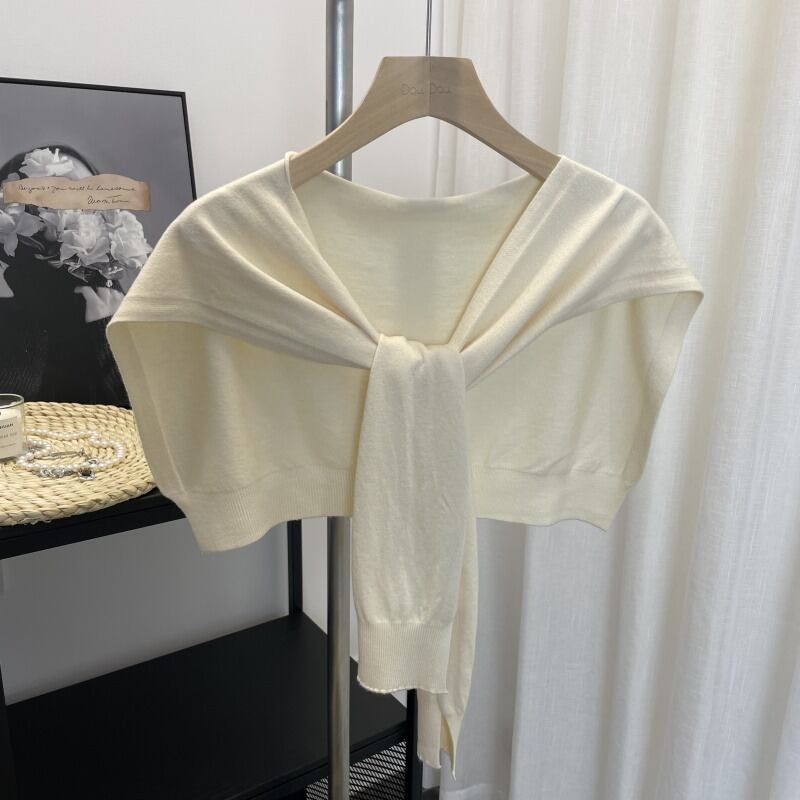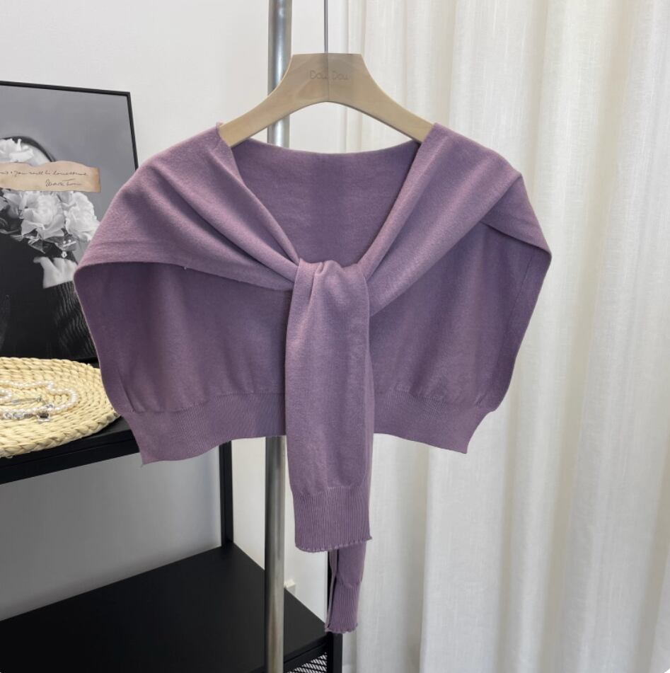 ニットショール 肩掛けカーディガン風 ニット 上着 羽織 ショート クロップド丈 重ね着風 シンプル カジュアル おしゃれ こなれ感 個性的 存在感 都会的 清潔感 爽やか シック 無地 春 夏 秋 冬 シーズンレス デート お出かけ リゾート 旅行 女子会 ショッピング お花見 カフェ ランチ 重ね着 韓国 オルチャン 普段使い 着回し レイヤード 流行 インスタ映え ワンサイズ 白 ホワイト 黒 ブラック 紫 グレー 黄色 イエロー ベージュ ネイビー ロイヤルブルー 大人カラー 春カラー パープル