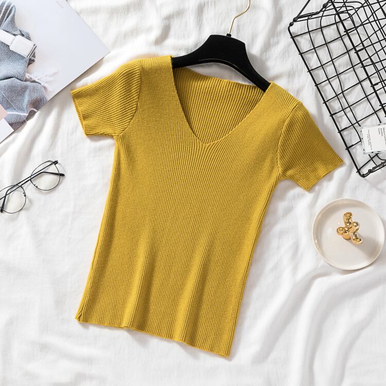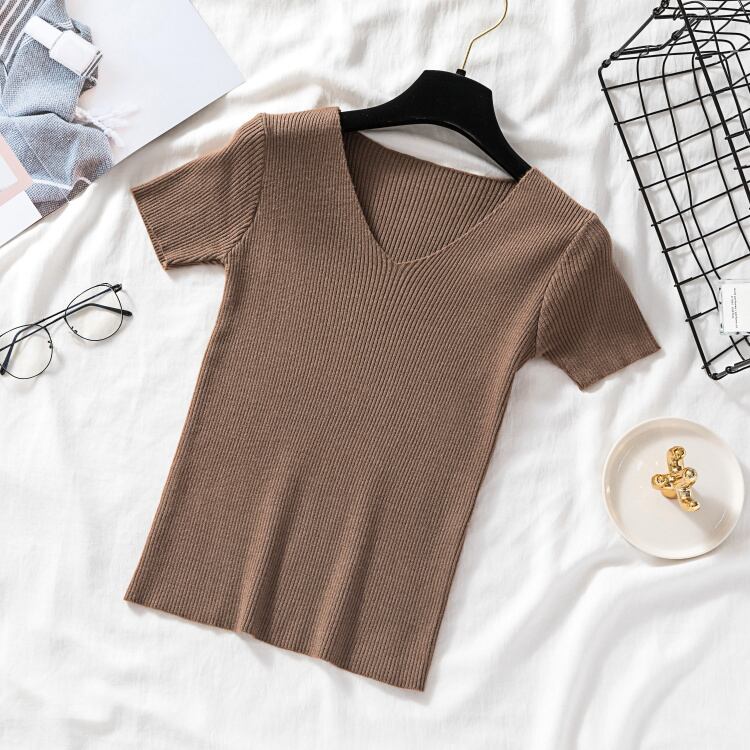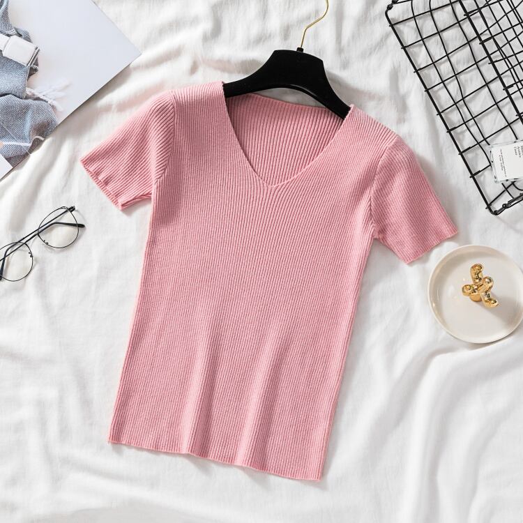レディース トップス カットソー ニット セーター プルオーバー 半袖 Vネック 襟なし タイト スリム 細身 リブニット シンプル カジュアル こなれ感 ベーシック ナチュラル 清潔感 爽やか シック 無地 春 夏 ママ OL 学生 デート お出かけ リゾート 旅行 女子会 ショッピング カフェ ランチ 重ね着 普段使い 着回し レイヤード 定番 ワンサイズ 白 ホワイト 黒 ブラック 茶色 ブラウン 黄色 イエロー ベージュ ピンク オレンジ ワインレッド 緑 グリーン ベーシックカラー 春カラー
