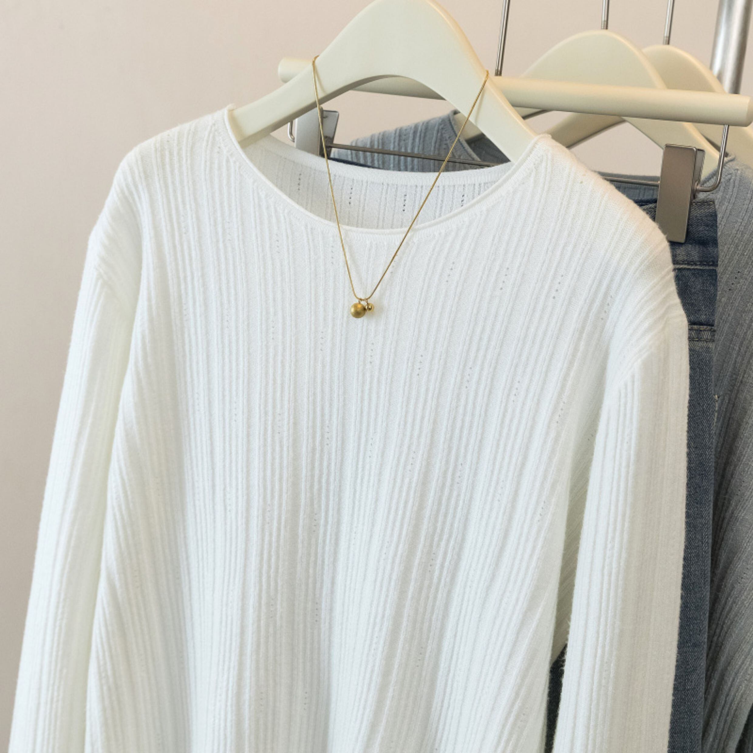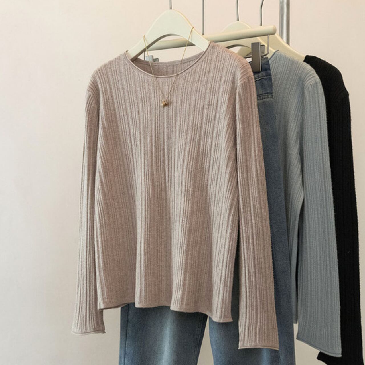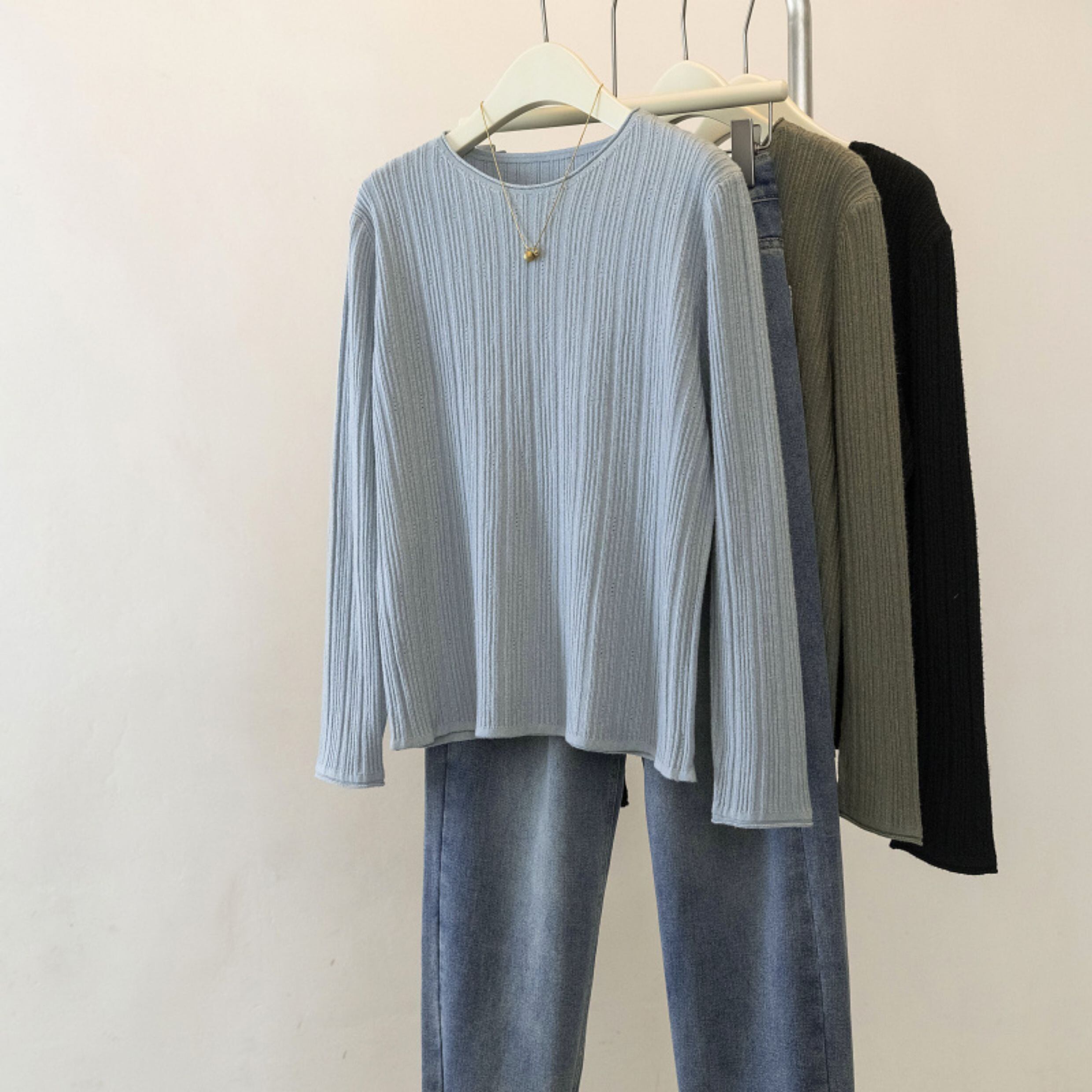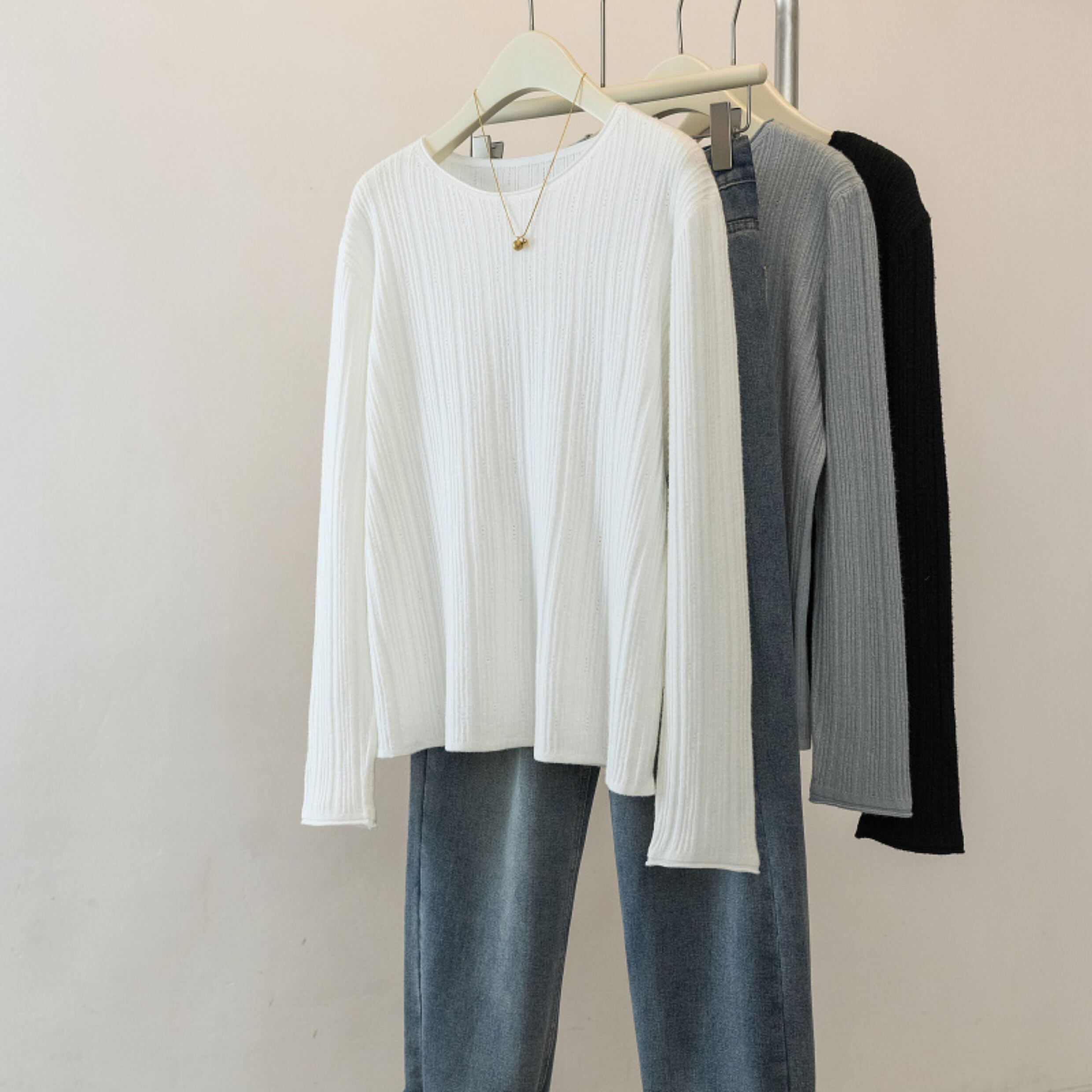 一枚あると便利な、ベーシックなリブ編み長袖トップス。デニムと合わせたカジュアルスタイルから、きれいめなスカートと合わせたオフィスカジュアルまで、幅広いシーンで活躍します。ジャケットやカーディガンを羽織ってももたつかず、ロングシーズン着回せるマストハブアイテムです。