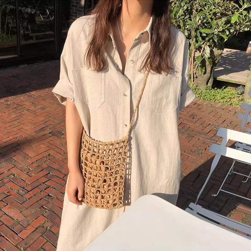 レディース ワンピース シャツワンピ ロング 半袖 ドロップショルダー 襟付き 角襟 フェミニン スリット サイドスリット ポケット 前開き ボタン 大人可愛い きれいめ シンプル カジュアル 上品 おしゃれ こなれ感 ラフ 主役級 抜け感 都会的 カレッジ風 学生風 ベーシック ナチュラル 清潔感 涼しげ リラックス 軽やか 通気性 爽やか セクシー 色気 シック アンニュイ 無地 春 夏 秋 ロングシーズン 会議 MTG ミーティング プレゼン ママ マタニティ オフィス ビジネス OL 通勤 学生