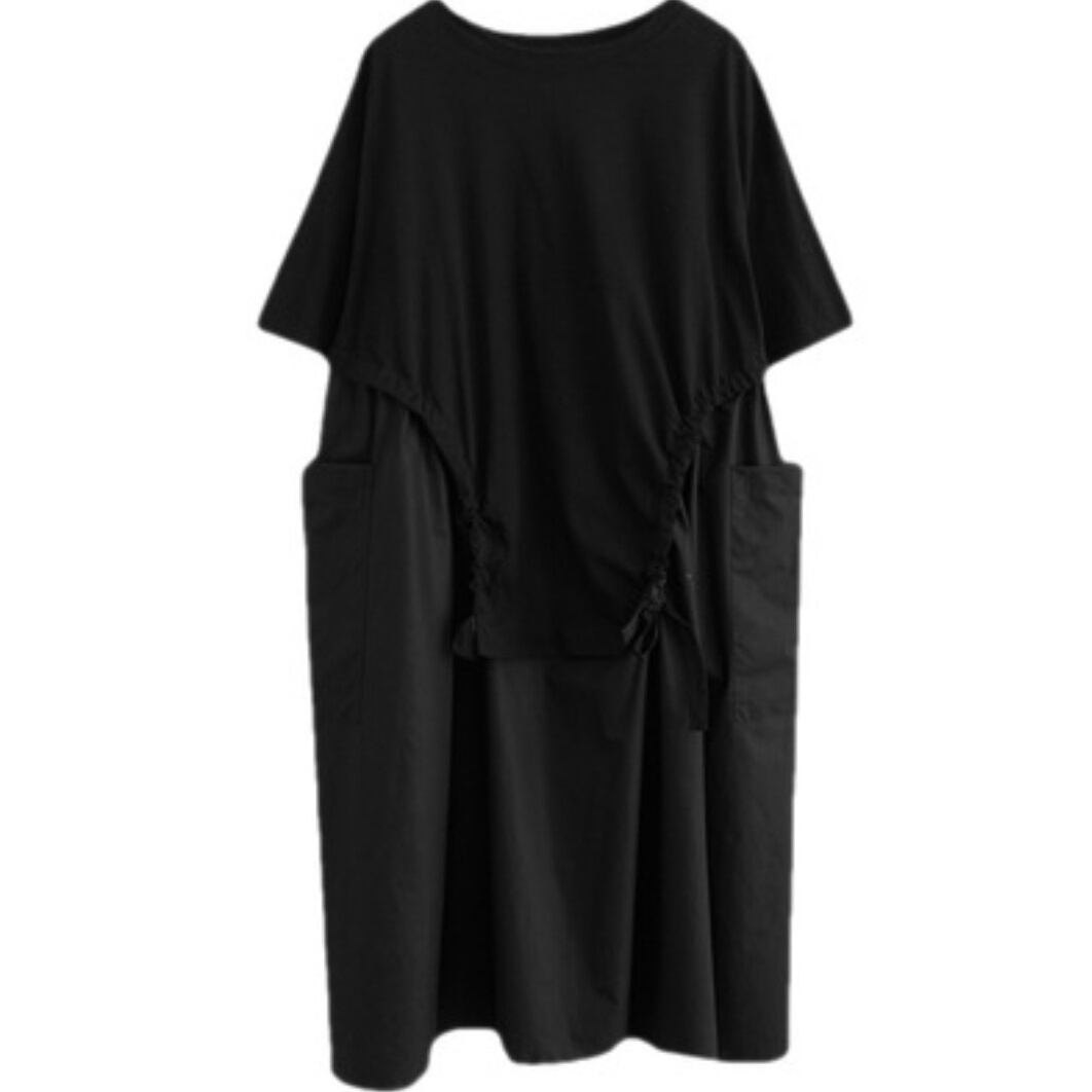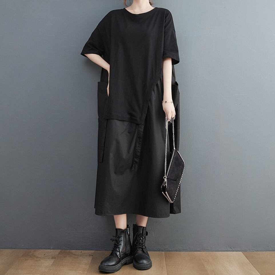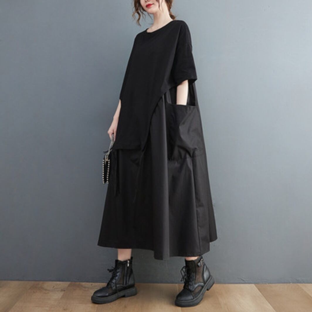 ワンピース レディース ロングシャツ コットン レディースシャツ シャツワンピース シャツワンピ モード マタニティ ロング丈 OL 異素材ドッキング セレブ シンプル 上品 おしゃれ こなれ感 クール 存在感 都会的 ナチュラル 春 秋 ママ デート お出かけ ゆったり きれいめ レストラン 休日 ショッピング 体型カバー 着瘦せ 着やせ 普段使い 通勤 可愛い L XL 夏 秋 ブラック ワンカラー 大人カラー
