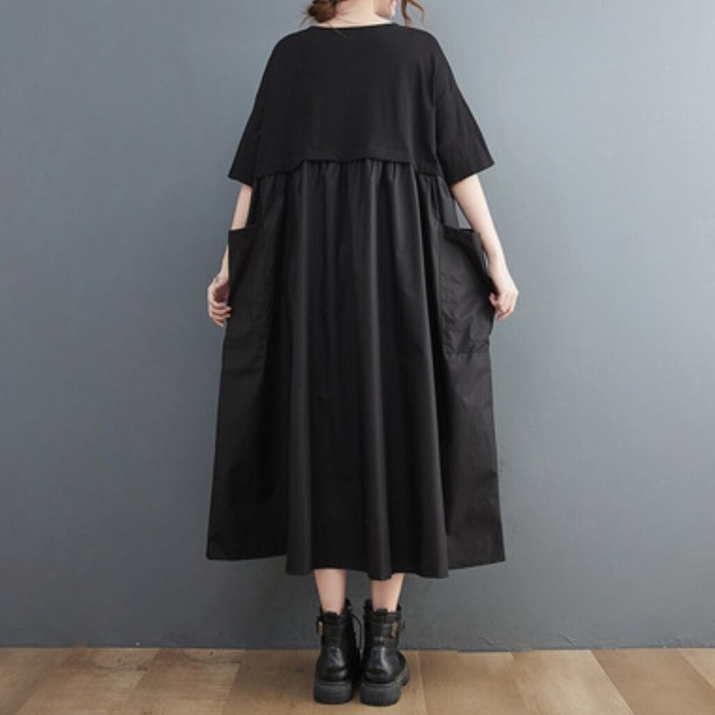 ゆったり感と上品さを兼ね備えた、大きいサイズ対応のミディアム丈ワンピース。シンプルでコーデしやすく、1枚でナチュラルなこなれ感を演出します。普段使いにもお出かけにも◎