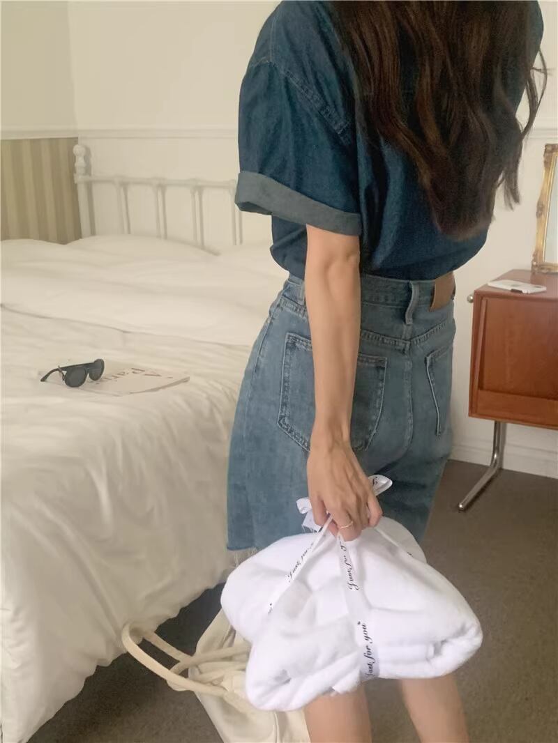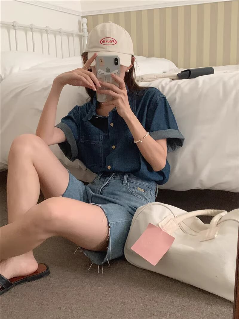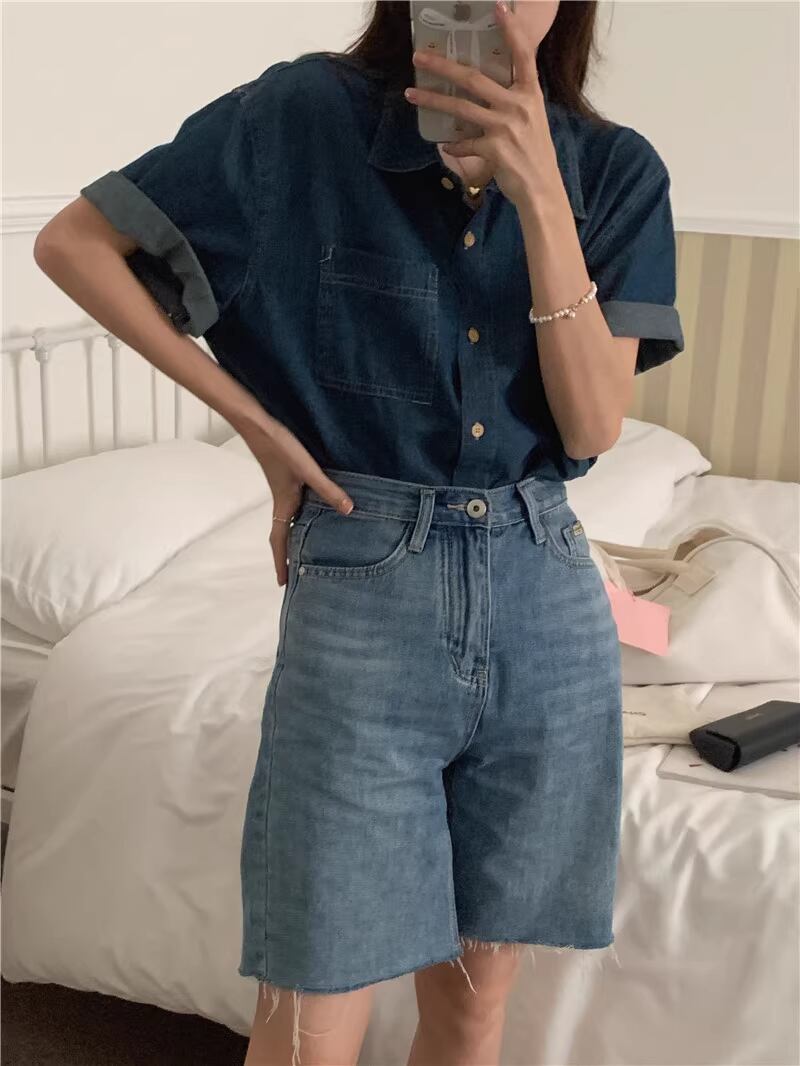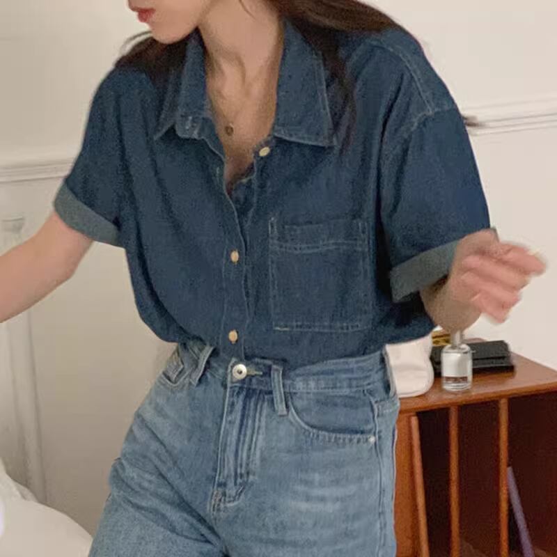 レディース トップス シャツ デニム 半袖 角襟 フェミニン ポケット 前開き 異国風 ボタン ヴィンテージ アメカジ デニム ブルーデニム 大人可愛い きれいめ シンプル カジュアル 上品 おしゃれ かっこいい こなれ感 ラフ ルーズ エレガント モダン ヴィンテージ ベーシック アメリカン カントリー 涼しげ リラックス 軽やか 通気性 爽やか 無地 春 夏 ママ マタニティ 通勤 学生 学校 通学 デート お出かけ アウトドア キャンプ パーティー イベント リゾート 旅行 海 プー