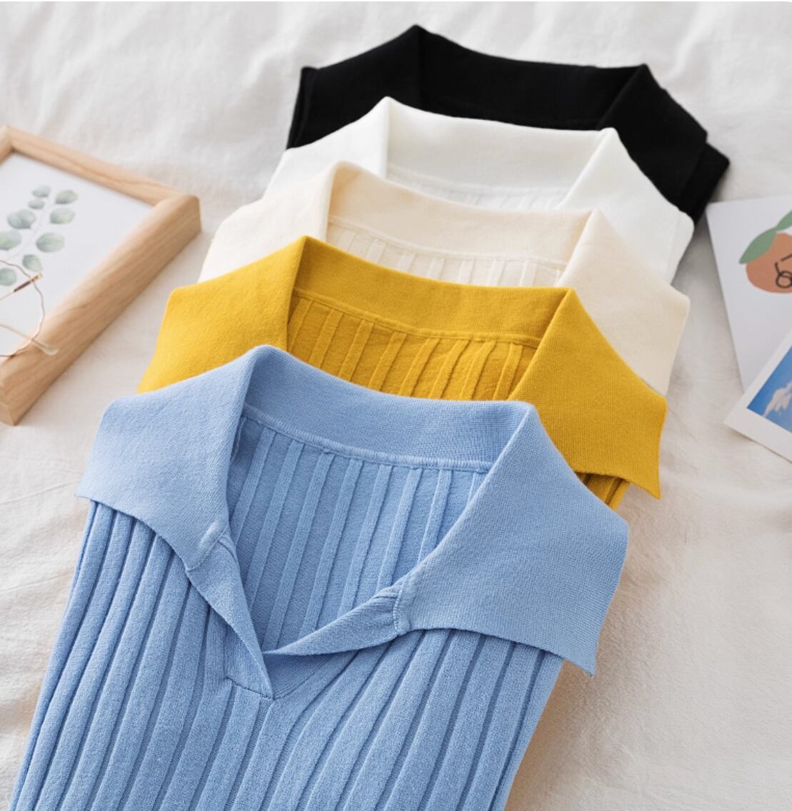 レディース トップス ニット セーター プルオーバー 長袖 襟付き 角襟 スキッパー タイト スリム 細身 リブニット フィット きれいめ シンプル カジュアル おしゃれ ベーシック ナチュラル 清潔感 爽やか 無地 春 秋 冬 ロングシーズン ママ 学生 デート お出かけ 旅行 女子会 ショッピング お花見 カフェ ランチ 重ね着 楽ちん 暖かい 防寒 着回し レイヤード 定番 ワンサイズ 白 ホワイト 黑 ブラック オフホワイト 黄色 イエロー 水色 ライトブルー ベーシックカラー 大人カラー