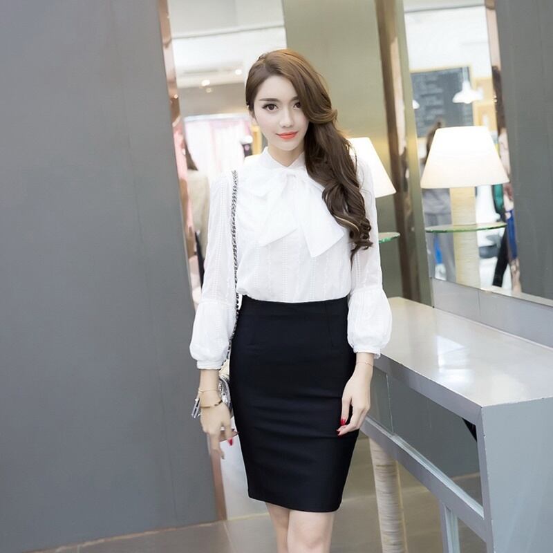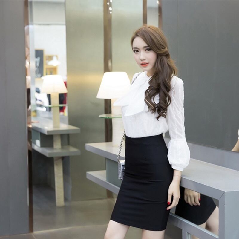 タイトフィットなシルエットが美脚を強調し、膝上の丈感が女性らしさを引き立てます。