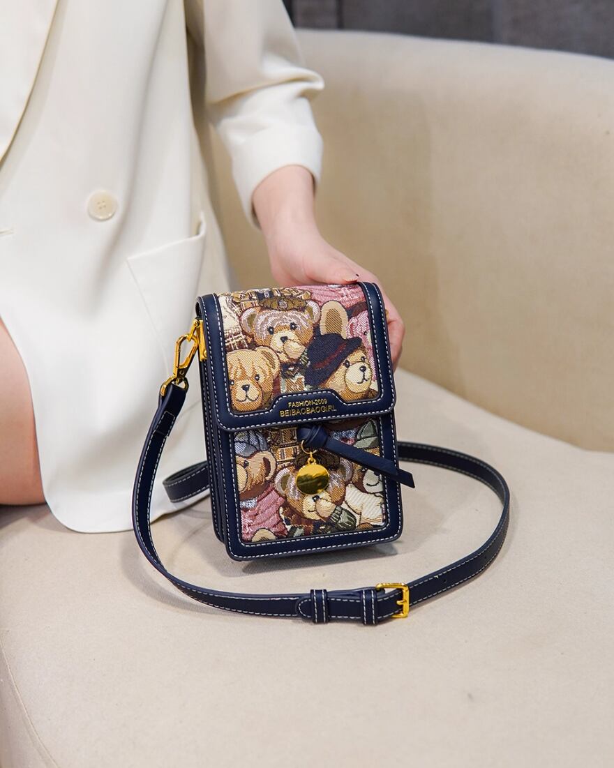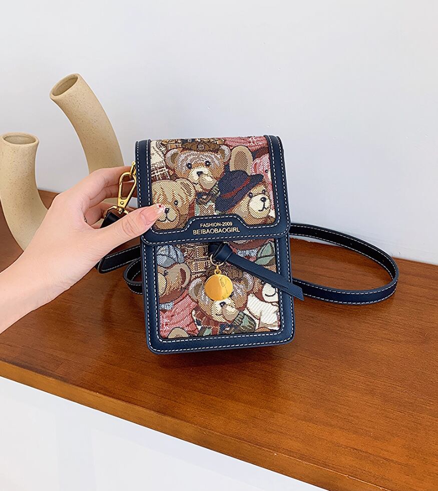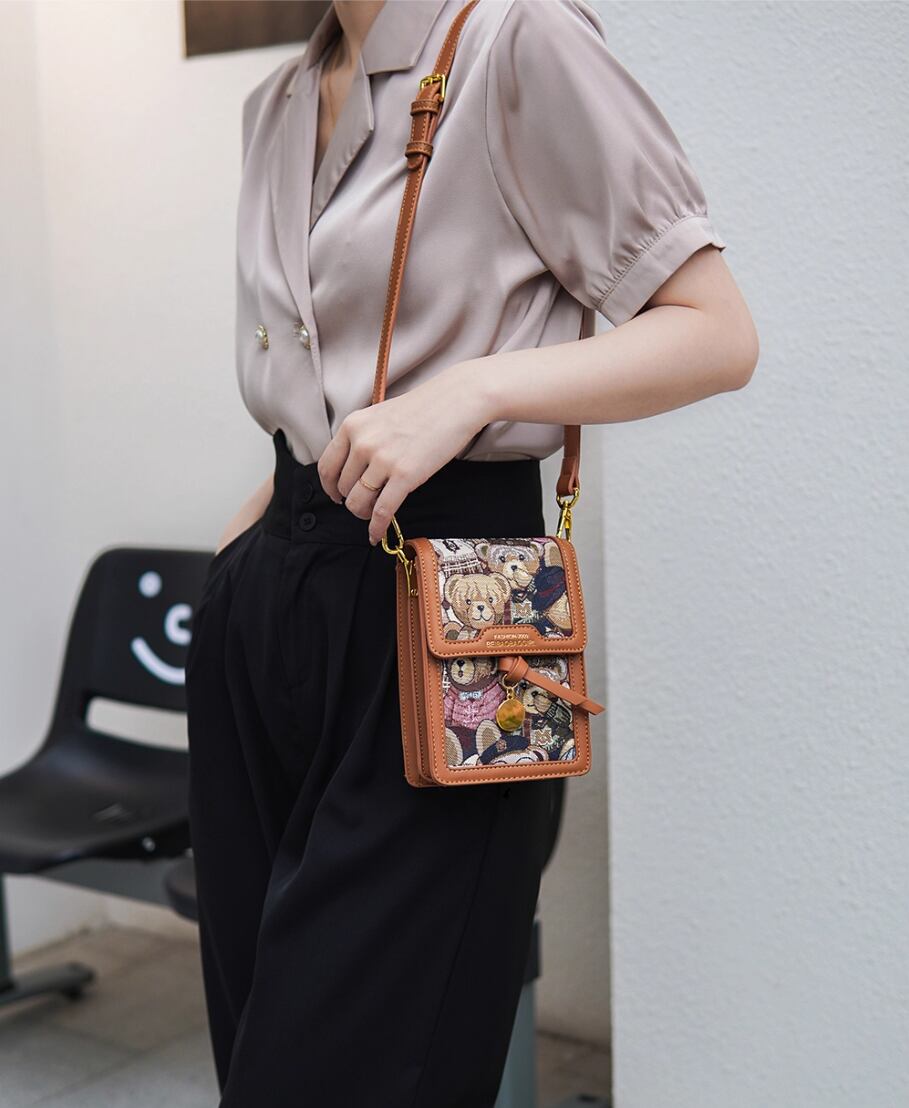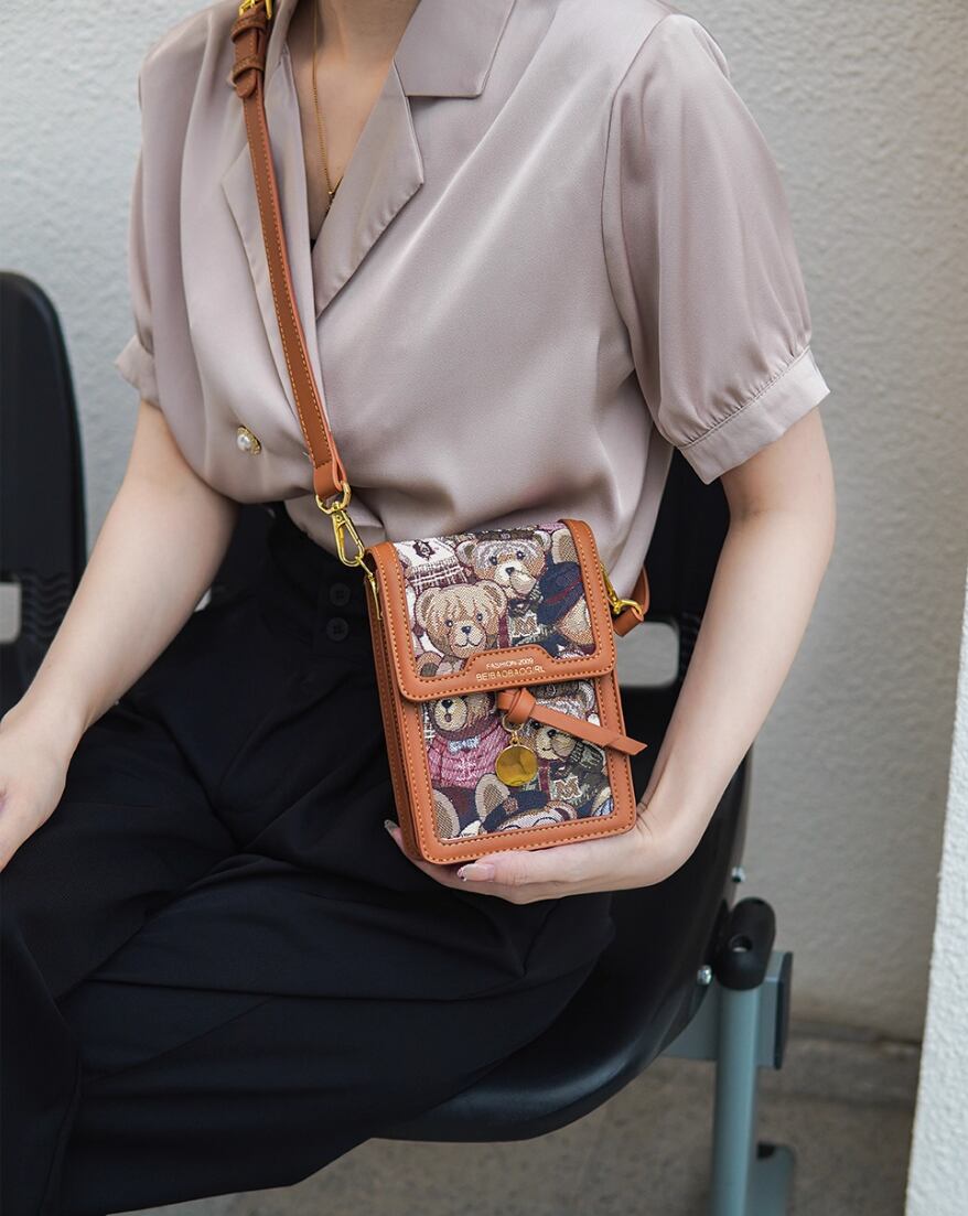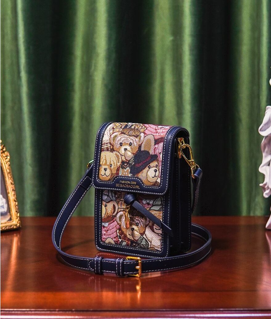華やかさと個性的なデザインが魅力の、レディースショルダー・斜め掛けバッグです!自立するスクエアフォルムは、普段使いから特別なお出かけ、女子会やデートまで幅広いシーンで大活躍します。かわいいクマの柄は、見た目にもお洒落で、カジュアルにも上品にも合わせやすいです。