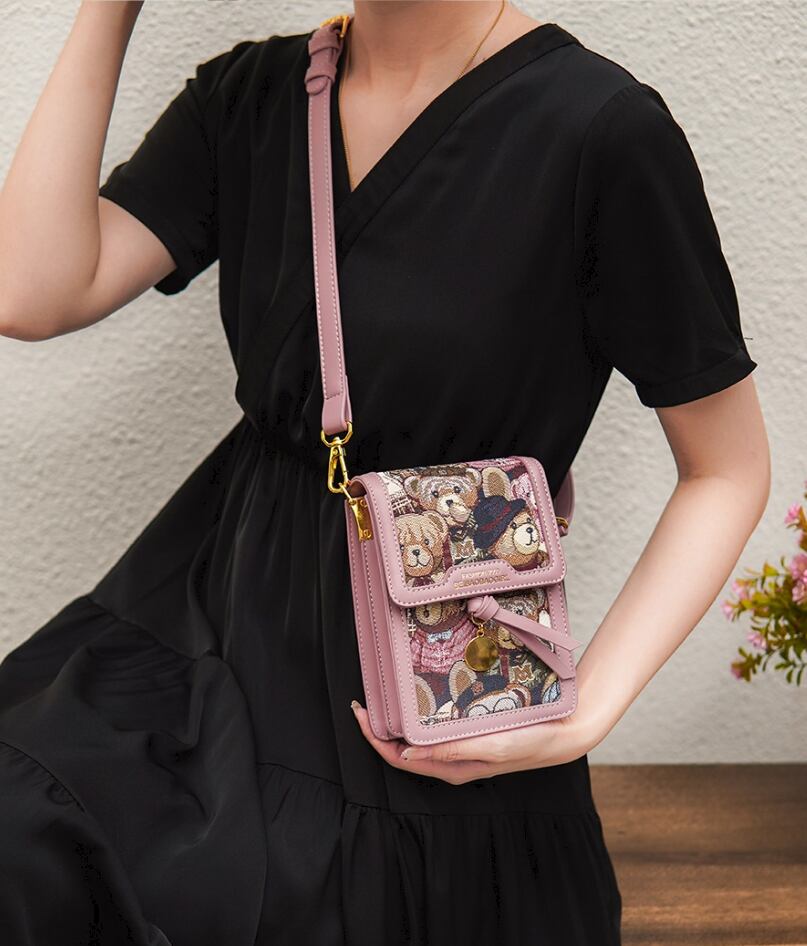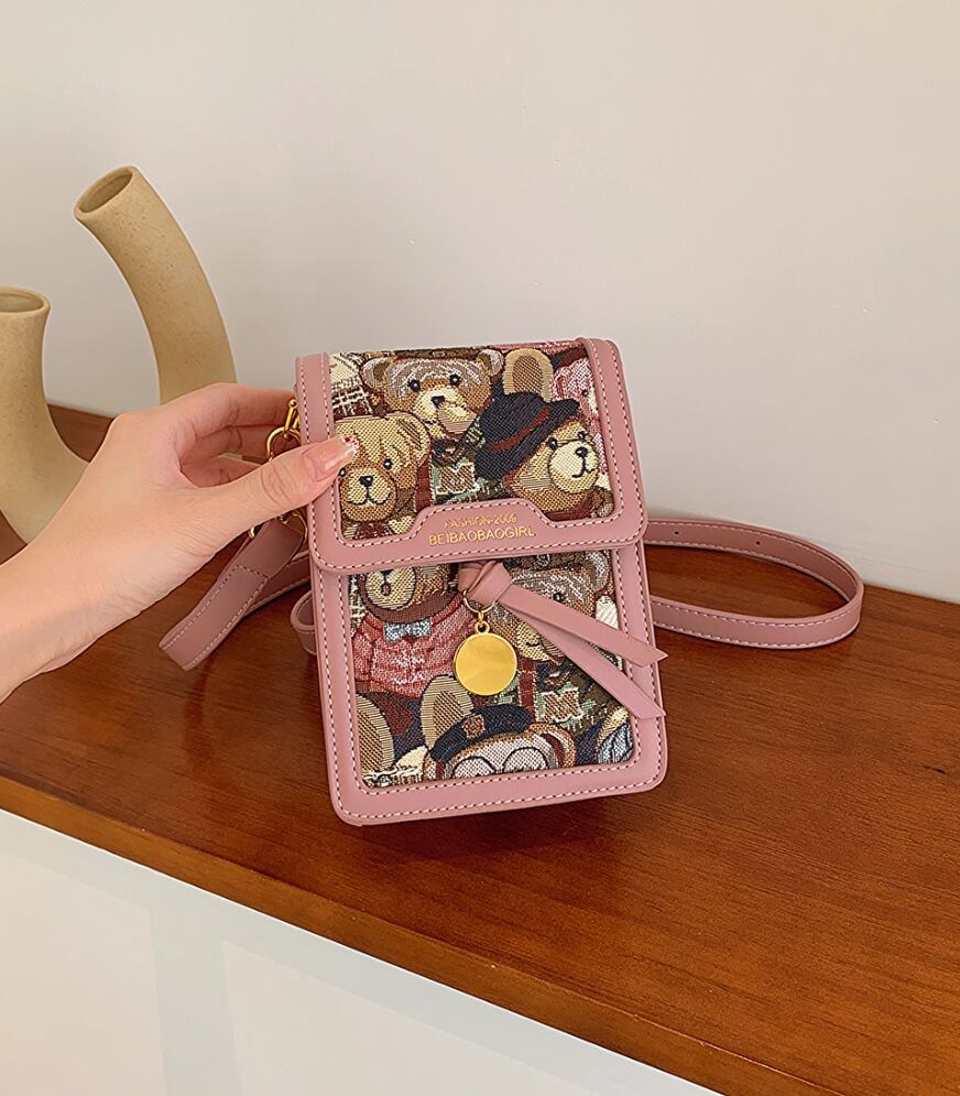 バッグ カバン レディース ショルダー 斜めがけ 肩がけ メッセンジャーバッグ 自立 スクエア 四角 調節可 かわいい 大人可愛い きれいめ カジュアル 上品 お洒落 レトロ こなれ感 ラフ ラブリー キュート ガーリー エレガント モダン 主役級 存在感 とろみ感 華やか 個性的 フェミニン おしゃれ 柄 クマ ベア お買い物 女子会 休日 ショッピング 普段使い 双子 韓国 コーデ スタイル 高見え 格上げ モテ インスタ映え デイリー 春 夏 秋 冬 シーズンレス お食事会 小さめ 小さい ピンク